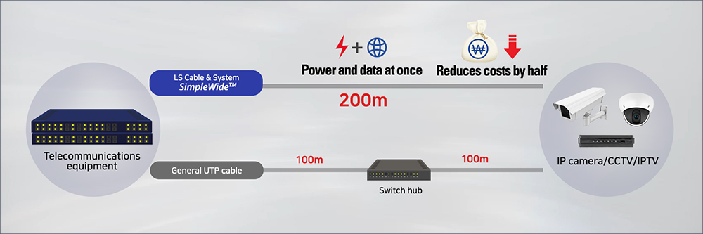 LS Cable & System (President & CEO Roe-hyun Myung) announced on July 21 that the company launched SimpleWide™, a LAN cable that can send data and power as far as 200m at the same time.