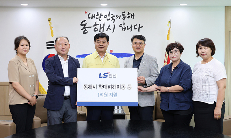 LS C&S Donghae Factory Manager Sang-cheol Yeo, Mayor of Donghae City Kyu-eon Sim, and Director of Gangwon Southern Child Protection Agency Byeong-ki Park were among the attendees present at the donation ceremony held at Donghae City Hall on August 8.