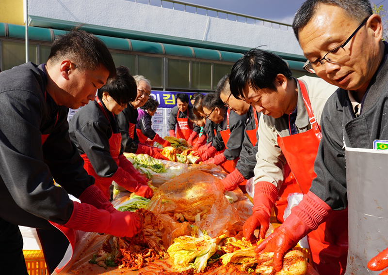 About 30 employees of the Donghae Plant helped make kimchi from no fewer than 600 head of cabbage together with staff and residents of the Songjeong Senior Citizen Center and members of local organizations, such as cooperatives and women's associations.